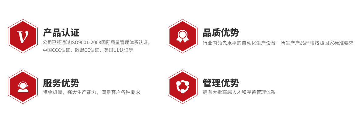經(jīng)過(guò)20多年的發(fā)展,公司積累了豐富的生產(chǎn)研發(fā)與技術(shù)經(jīng)驗(yàn),并獲得ISO9001、ISO14001、LPCB、UL、SAA、TUV、VDE、SGS、CQC、CE、CCC、ROHS、REACH、CVC、EACC、WK、GRS等資質(zhì)認(rèn)證。