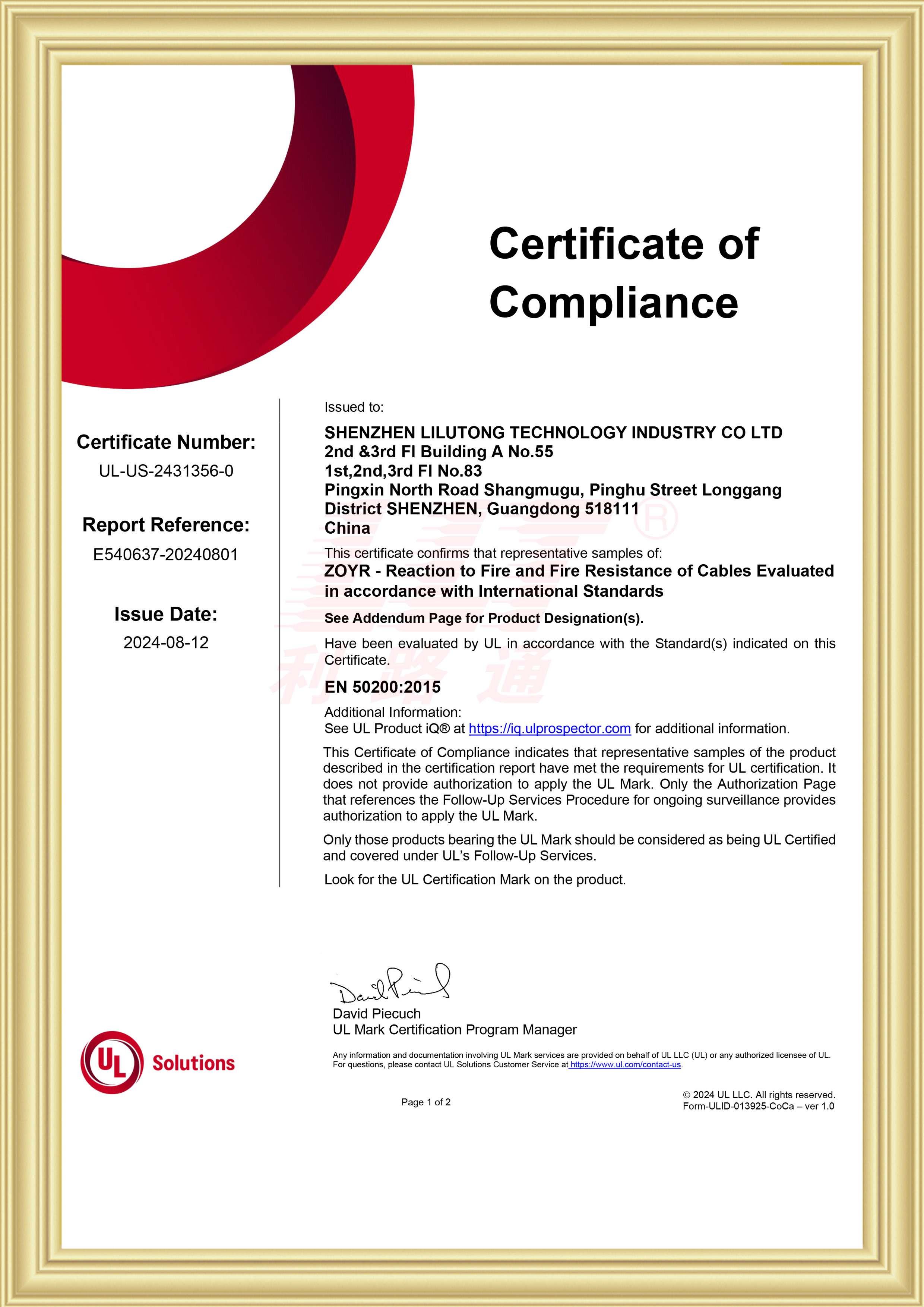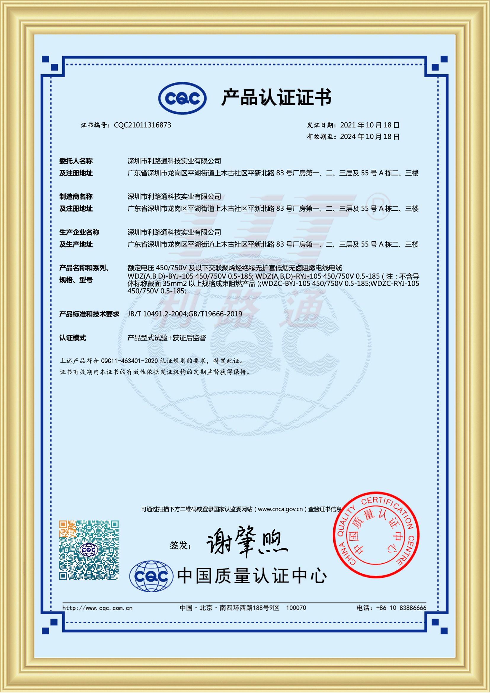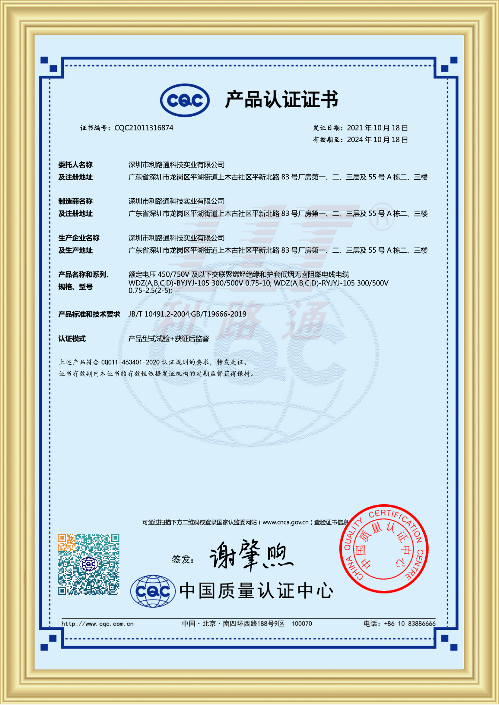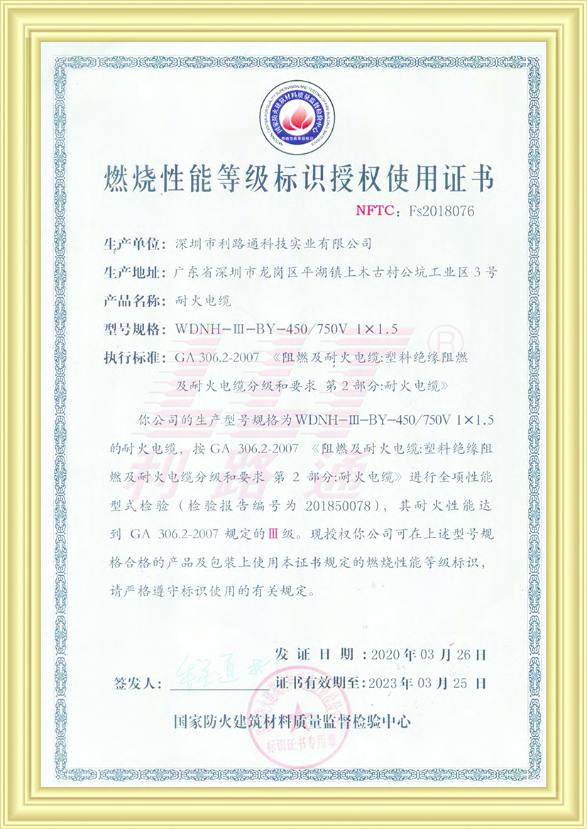 利路通儲(chǔ)能線(xiàn)纜斬獲多項(xiàng)國(guó)際權(quán)威認(rèn)證
