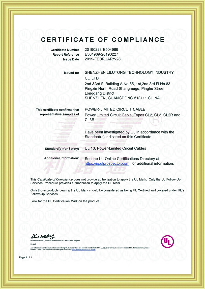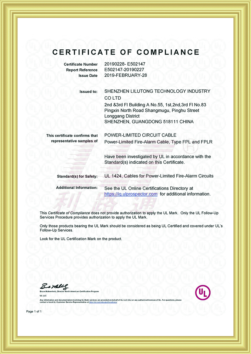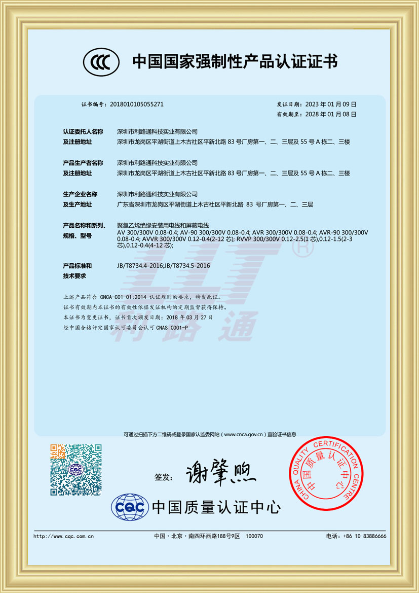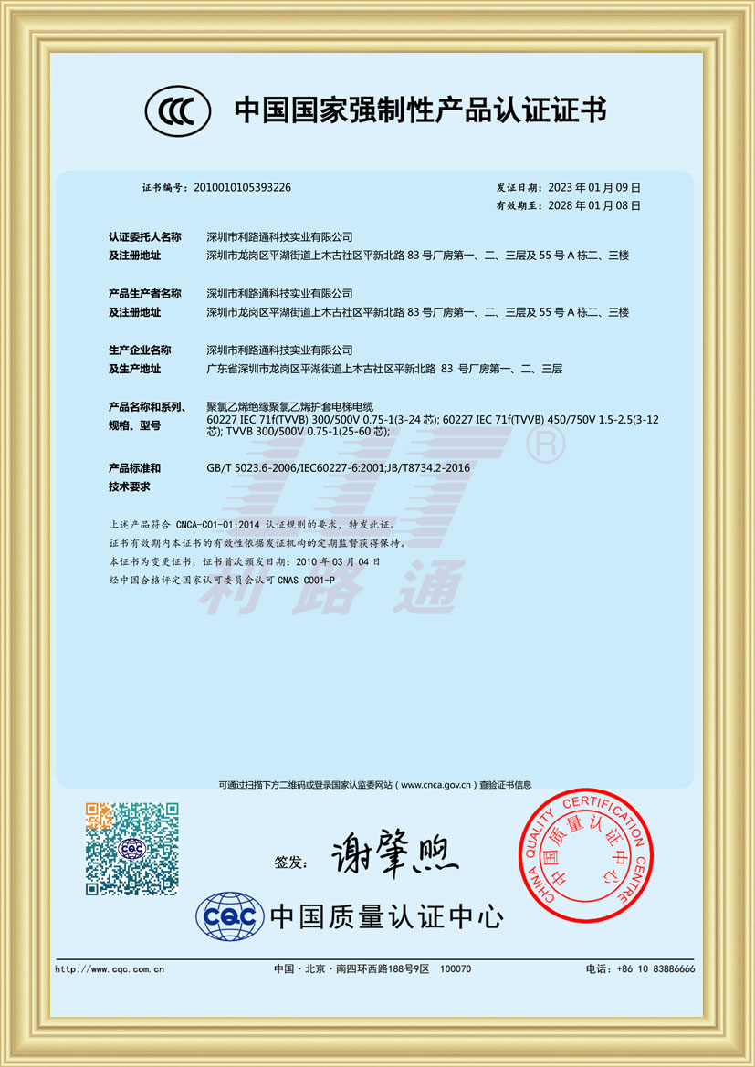 深圳市利路通科技實(shí)業(yè)有限公司成立于2001年,是一家主要從事防火線(xiàn)纜、硅膠線(xiàn)纜、橡膠線(xiàn)纜、低煙無(wú)鹵線(xiàn)纜、通訊線(xiàn)纜、漂浮線(xiàn)纜、耐寒線(xiàn)纜、控制線(xiàn)纜、柔性線(xiàn)纜、電梯線(xiàn)纜、機(jī)器人線(xiàn)纜、新能源專(zhuān)用線(xiàn)纜、光纖綜合線(xiàn)等全系列電線(xiàn)電纜的產(chǎn)品設(shè)計(jì)、研發(fā)、生產(chǎn)、銷(xiāo)售、工程方案銷(xiāo)售服務(wù)的綜合性企業(yè),產(chǎn)品廣泛應(yīng)用于消防與安防,通訊,新能源,太陽(yáng)能,高層樓宇,軌道交通,橋梁,工業(yè)4.0設(shè)備,船舶,航空,軍工等領(lǐng)域并榮獲深圳高新技術(shù)企業(yè)、全國(guó)守合同重信用企業(yè)、深圳市愛(ài)心企業(yè)、深圳市消防安防百?gòu)?qiáng)企業(yè)、電線(xiàn)電纜協(xié)會(huì)理事會(huì)單位、國(guó)家一級(jí)計(jì)量體系合格企業(yè)、中國(guó)優(yōu)秀民營(yíng)科技企業(yè)。